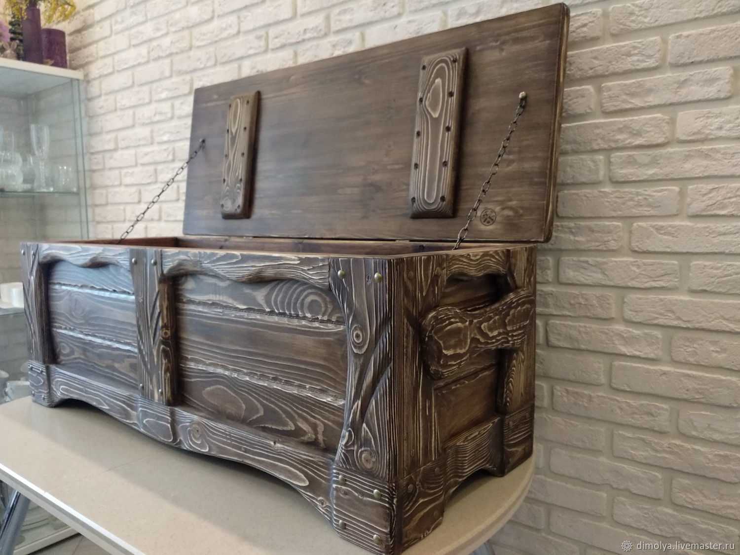 Конструкцию сундука можно не описывать, поскольку она проста до гениальности, и представляет собой ящик с крышкой.