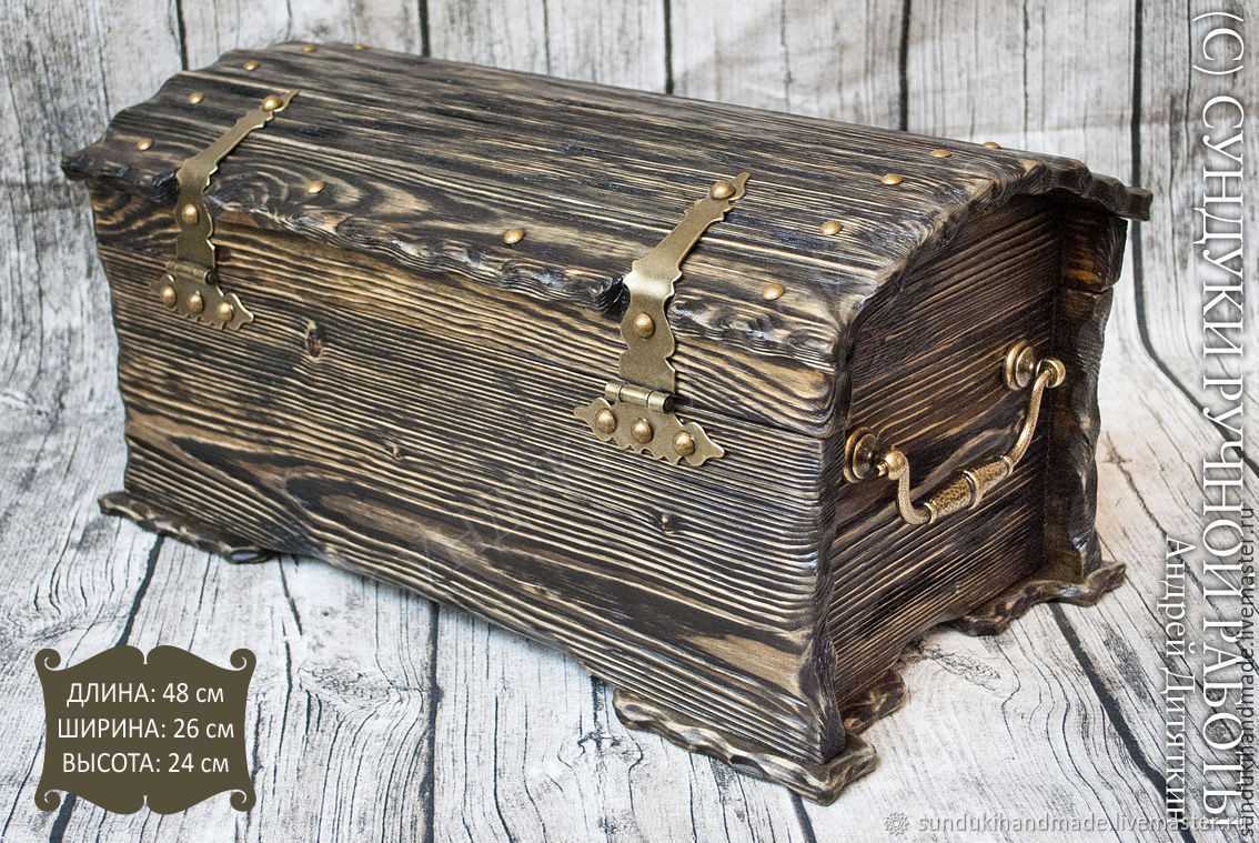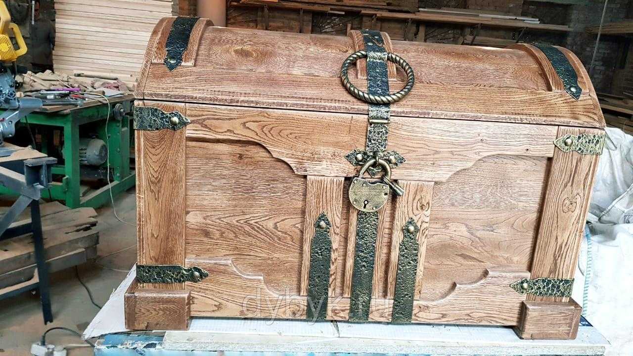 - Кованые. В массовой продаже таких изделий отыскать невозможно, но поскольку кузнечное дело в России тоже возрождается, то при желании можно заказать отдельные кованые элементы, и сделать сундук под старину.
