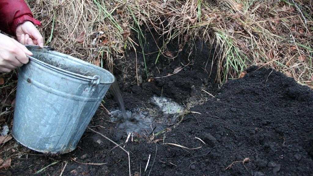 Обратите внимание: нельзя заглублять корневую шейку (т.е. место, где ствол дерева начинает разветвляться и переходит в корни), она должна быть на уровне земли