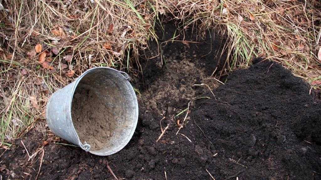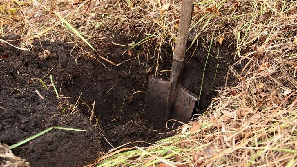 Как уже говорилось, на тяжелых почвах необходим дополнительный дренаж. С учетом дренажа мы сделали посадочную яму чуть глубже и насыпали на дно около 30 см песка, смешанного с извлеченной из ямы землей.