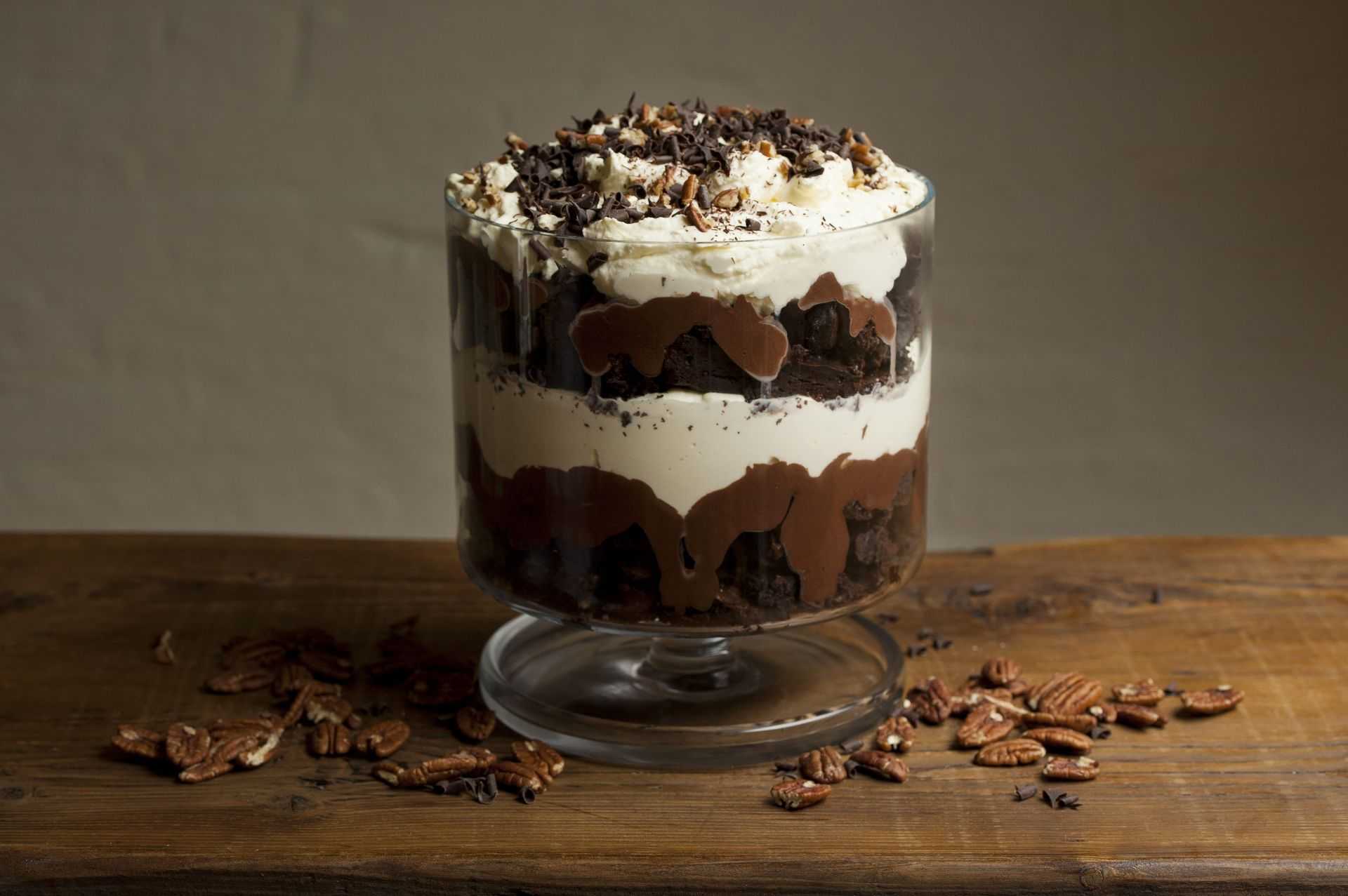 Теперь мы с вами знаем, как сделать трайфл с шоколадным бисквитом. Можно испечь очень тонкий корж, нарезать его полосками и свернуть рулетики. Нижний этаж получится в виде красивых улиток, смазанных кремом.