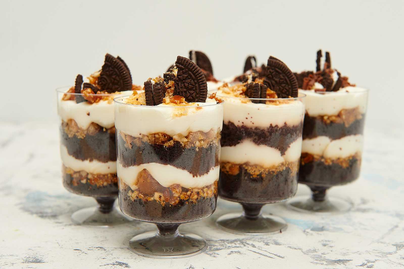 Десерт трайфл – это вкусное чередование сочных и нежных слоев из крема, ягод, бисквита, печенья. Стакан с мягким, не печенным тортиком – невероятно приятный сюрприз к романтическому свиданию. Он украсит любой праздничный стол.