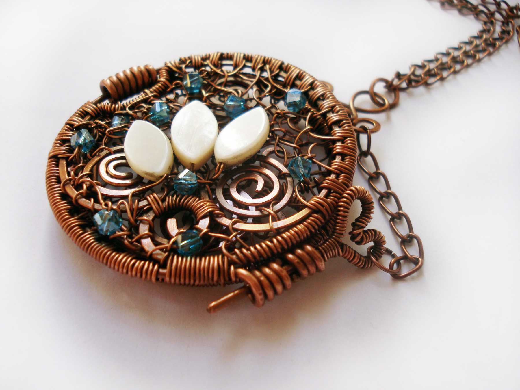 Чтобы медная проволока не темнела со временем – можно покрыть весь кулон лаком Цапон.