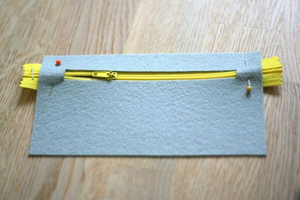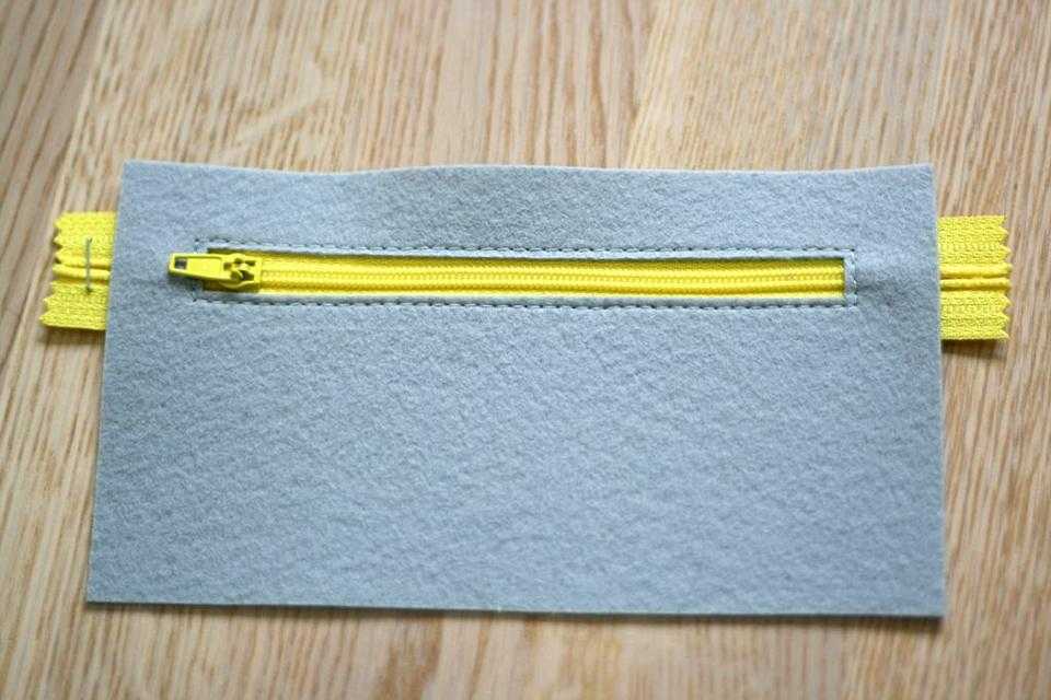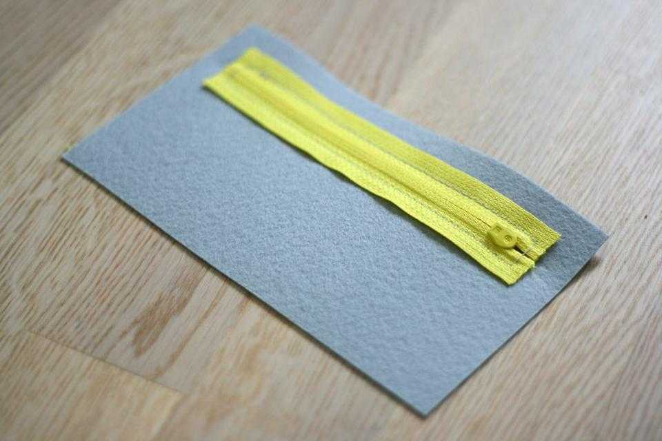 Затем по нижнему краю кошелька приклеиваем или пришиваем молнию.
