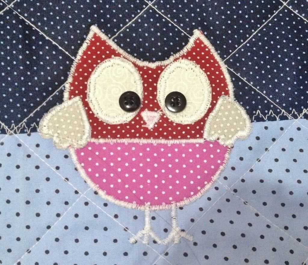 лучше брать материал для аппликации самой яркой Совы — так сова не будет сливаться с основной тканью.