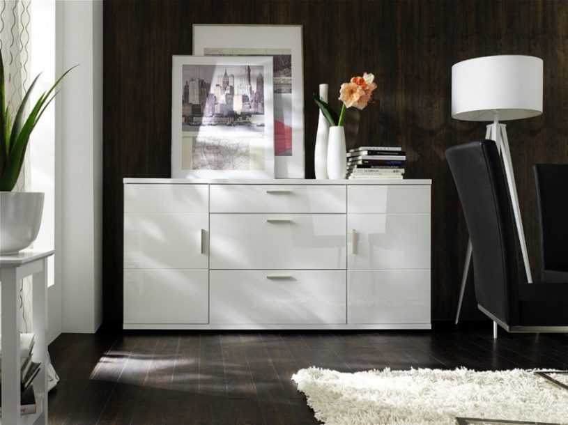 Обстановка в гостиной должна быть милой и непринужденной. И большая роль в создании такого уютного настроения принадлежит мебели. И комод не является исключением.