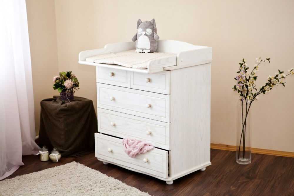Пеленальная поверхность легко убирается, превращая модель в стандартный комод, который используется в комнате ребенка постарше. Все отзывы о товаре – положительные. Он дает родителям гарантию безопасности, служит долго при сохранении всех первоначальных качеств.