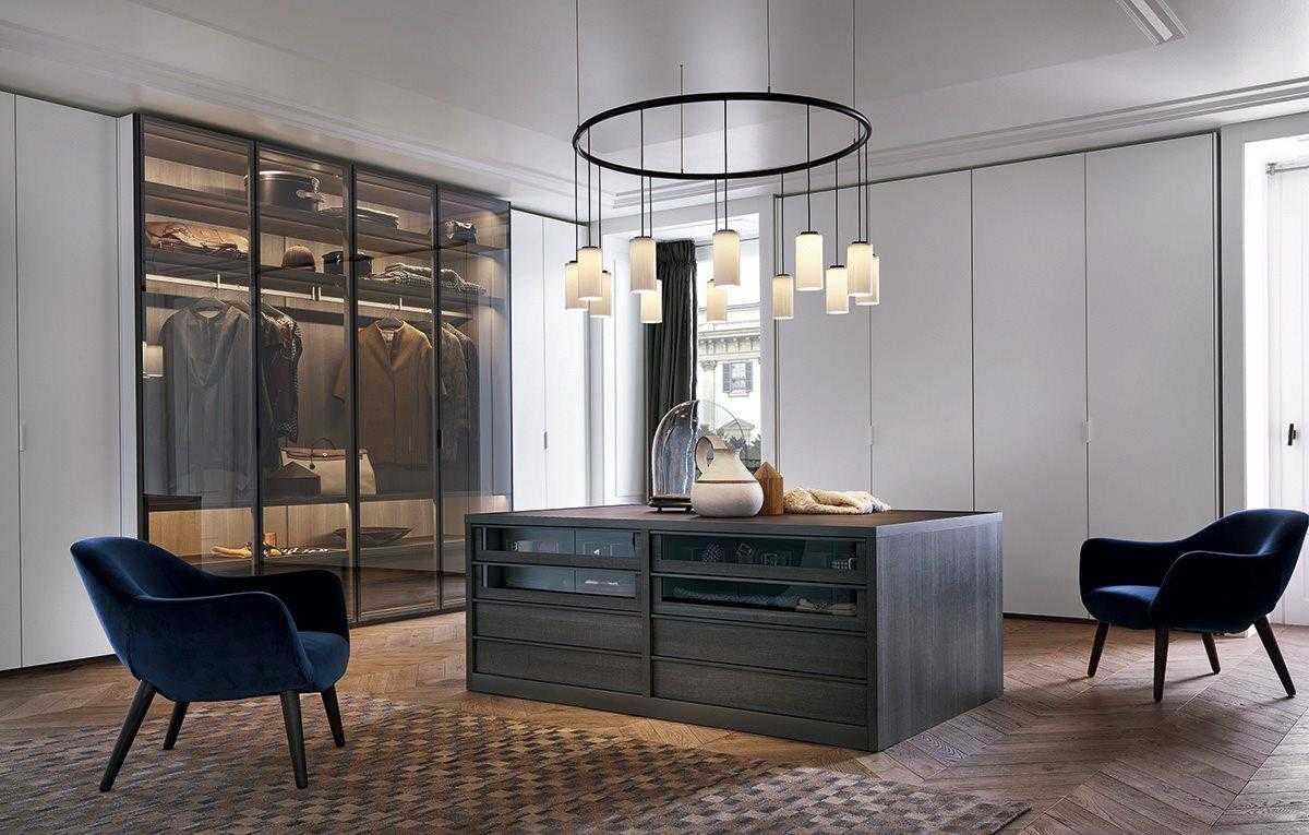 - комбинированный с ящиками, полками, секциями с распашными дверцами;