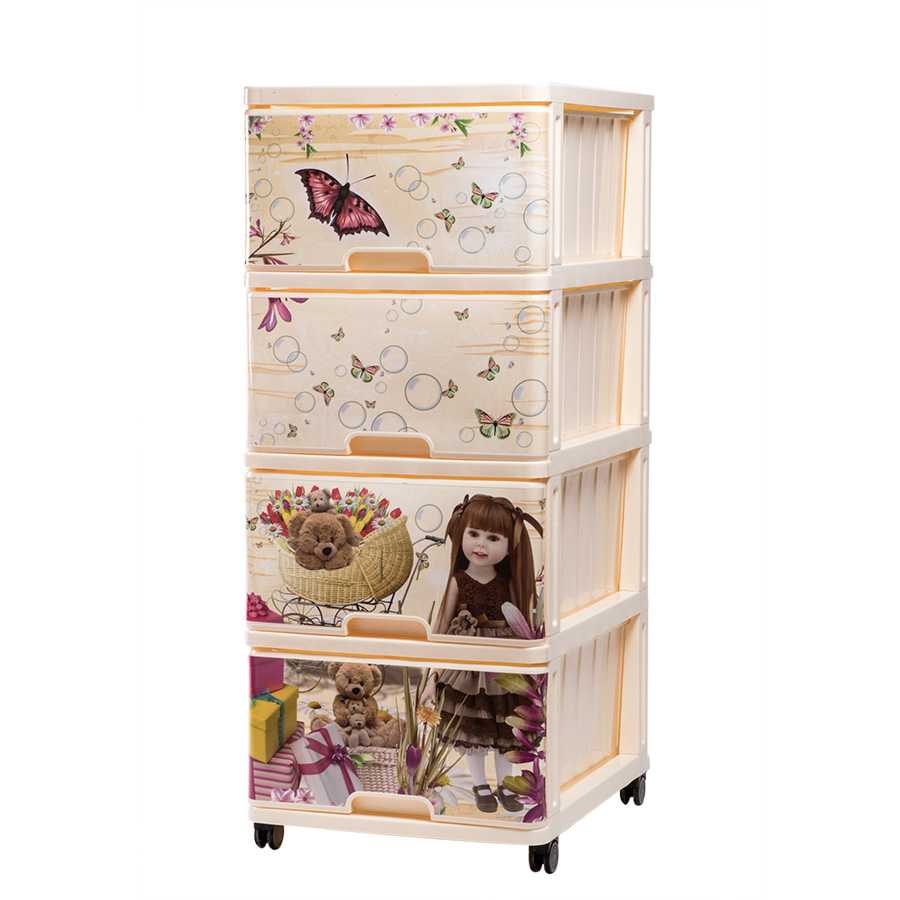 Бельевой комод Dunya Plastik Пластиковый с рисунком 4 ящика