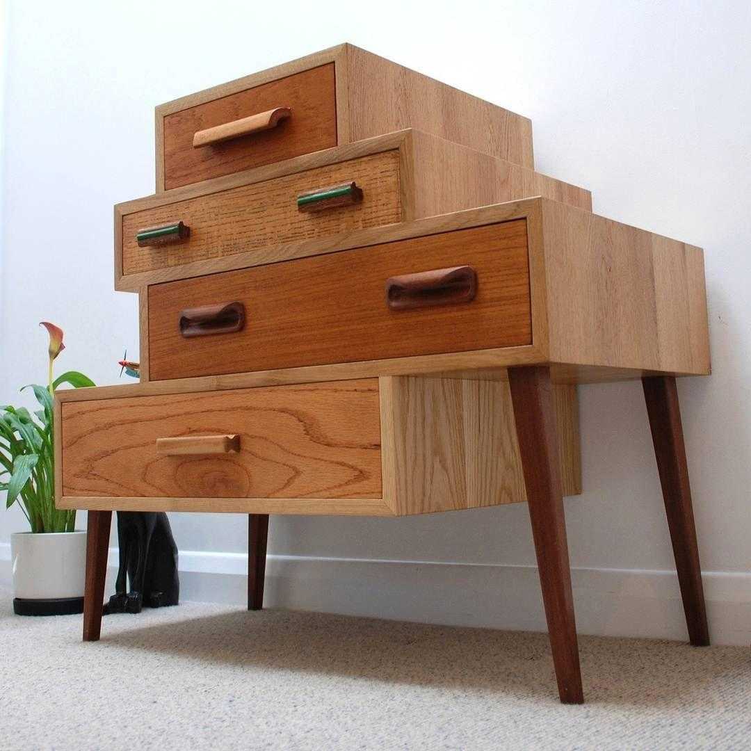 Они бывают одинаковыми, формируя прямоугольную конструкцию, и допустимо в одном комоде делать ящики разного размера: