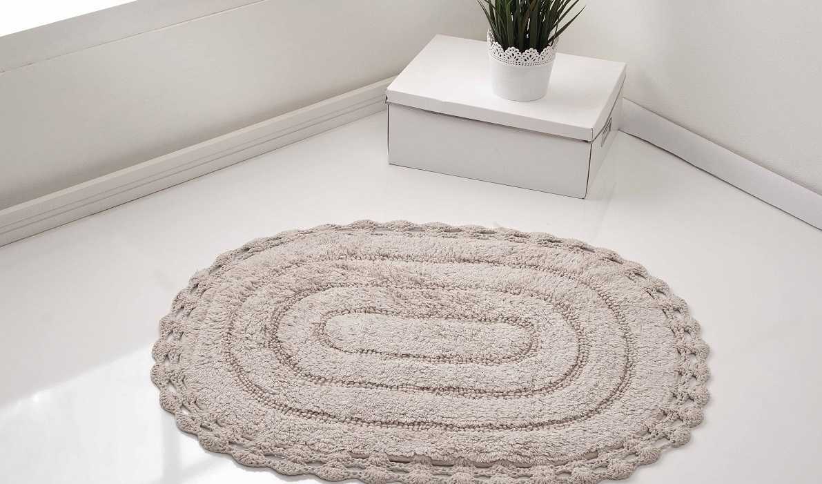 - Функциональную. После душа или ванны намного приятнее становиться на теплый половичок, чем на холодный кафель или плитку. К тому же влажные ноги сильно скользят на полу, а коврик сможет предотвратить падение.