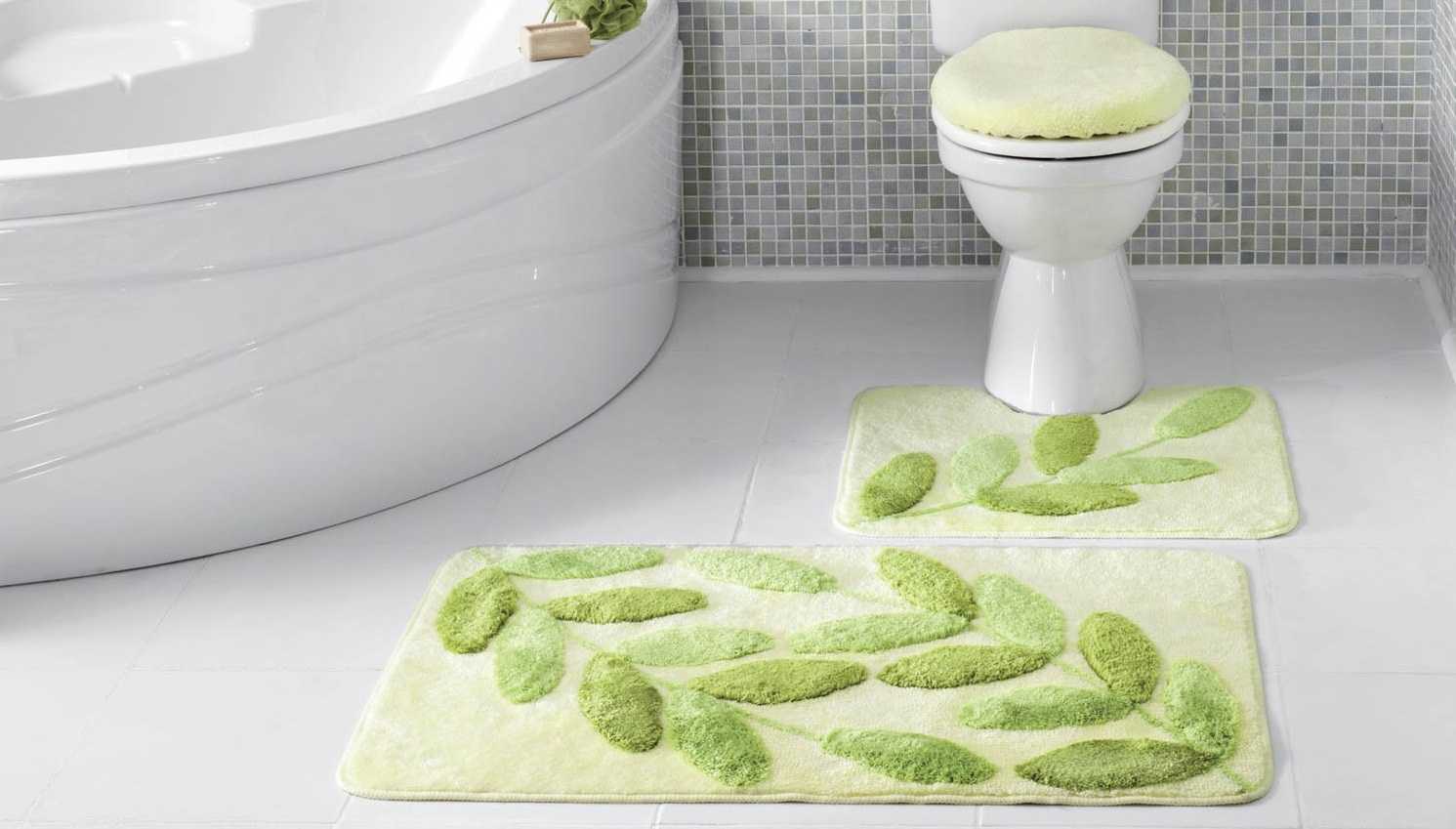 Коврик около туалета или ванны делает расположение ног на полу более приятным.