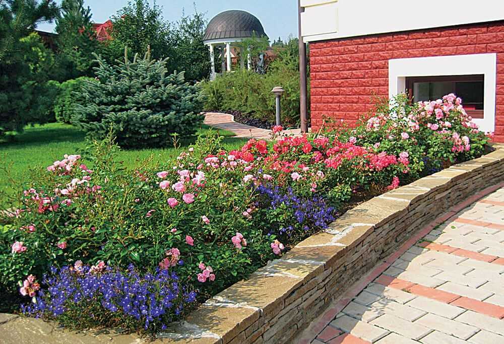 Используется для декорирования пространства вдоль стен сооружений. Правильно подобранный цветочный орнамент подарит чарующий облик даже самой неприметной постройке.