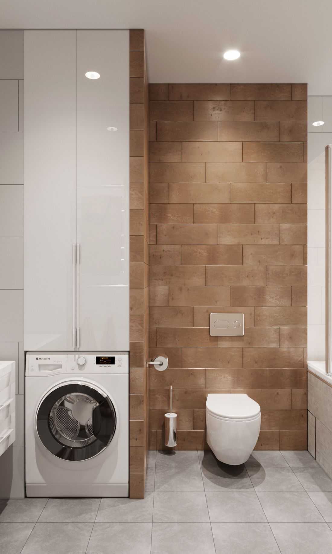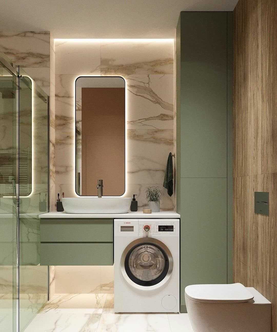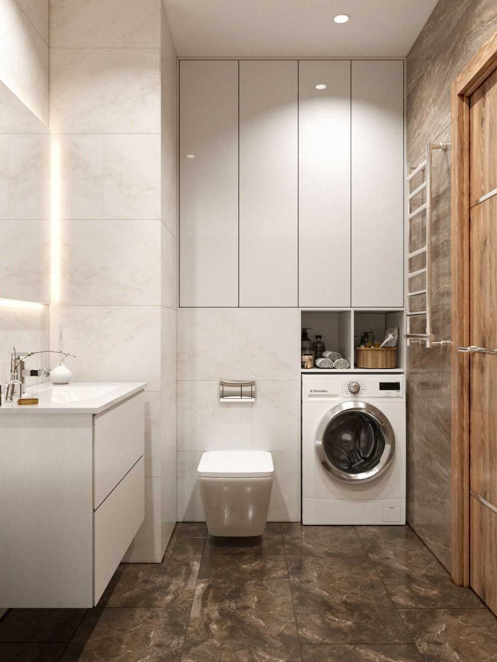Современная стиральная машина: дизайн ванной комнаты в сочетании с бытовой техникой