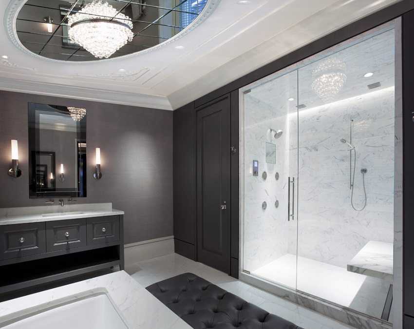 Зеркальный потолок в ванной — виды и особенности