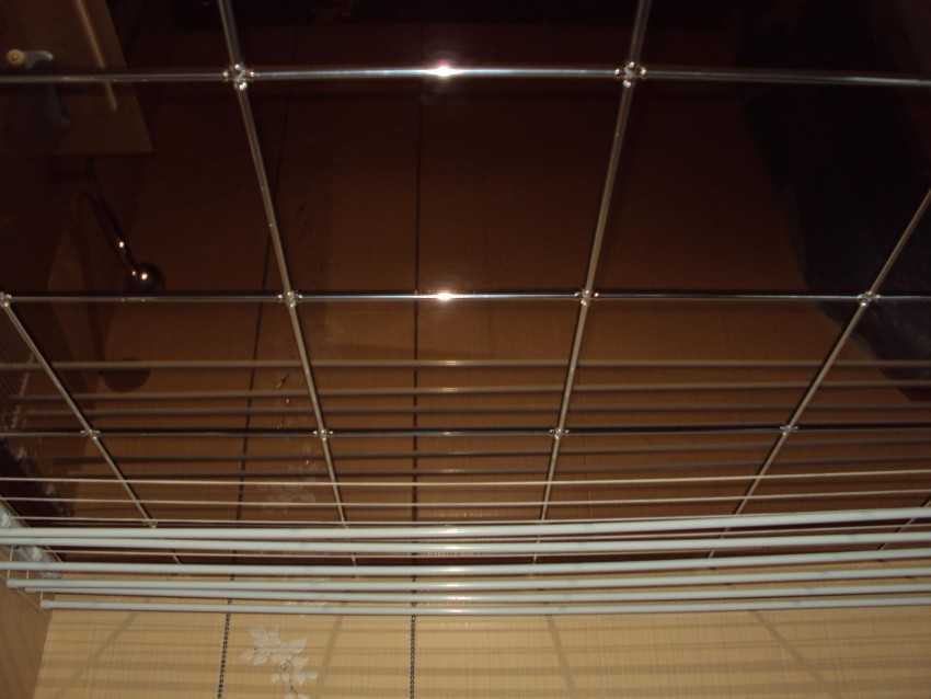 Достаточно простой для самостоятельного выполнения вариант установки — монтаж реечного зеркального потолка. На потолочную плоскость фиксируется подвесная балочная конструкция, а затем крепятся рейки для установки панелей. В этом случае отсутствует необходимость выполнять полный демонтаж, достаточно заменить потолочную отделку частично, но снижается общая высота помещения.