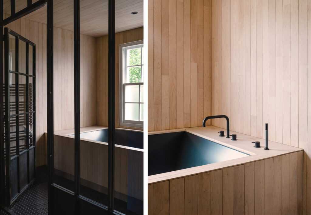 Для японцев важным элементом сантехники является ванна. Не только как место очищения, но и для расслабления и расслабляющей медитации. Если позволяет пространство, стоит выставить отдельно стоящую модель простой ванны. Системы гидромассажа — хорошее дополнение, дающее возможность создать домашнюю спа-зону.