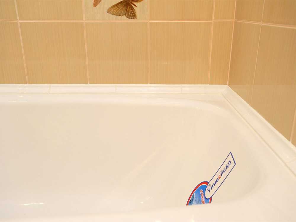 После установки ванной стык между бортиком и стеной заделывают силиконовым герметиком или любым другим способом.