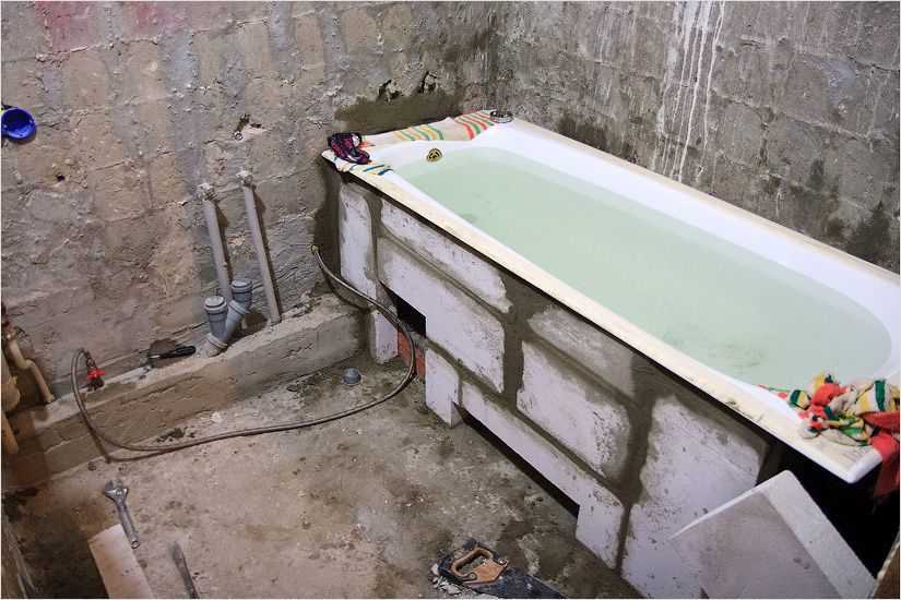 Монтаж чугунной ванны на основание из кирпича