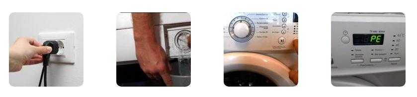 - Через розетку. Для сброса программы достаточно отключить машину от розетки и повторно включить через 20-30 секунд.