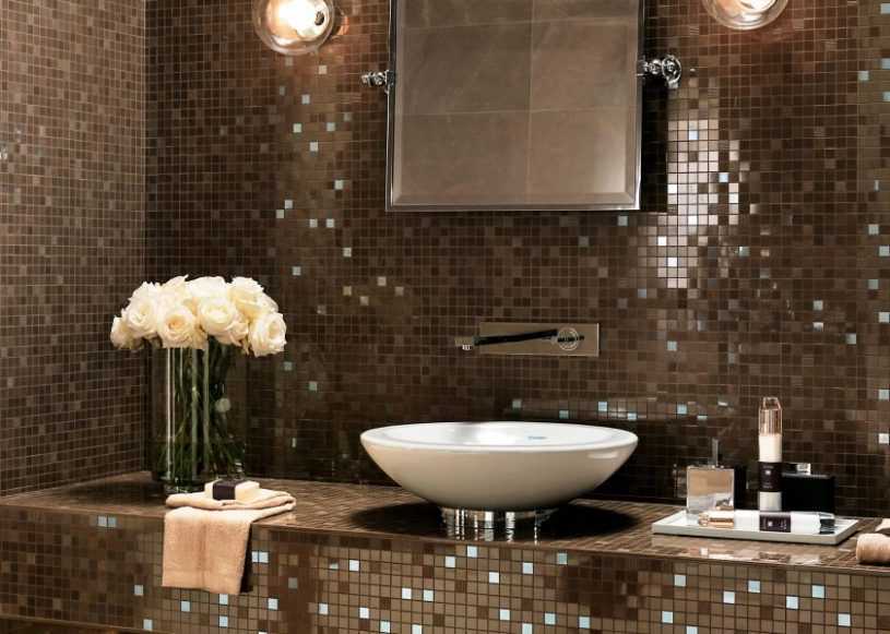 Также необходимо помнить, что зеркальная плитка хорошо очищается от грязи в отличие от шершавой плитки. Рекомендация: при желании можно украсить глянцевой плиткой полностью одну стену ванной комнаты.