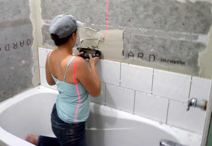 Зачастую у стен плитку необходимо подрезать. Будьте аккуратны, не повредите облицовку.