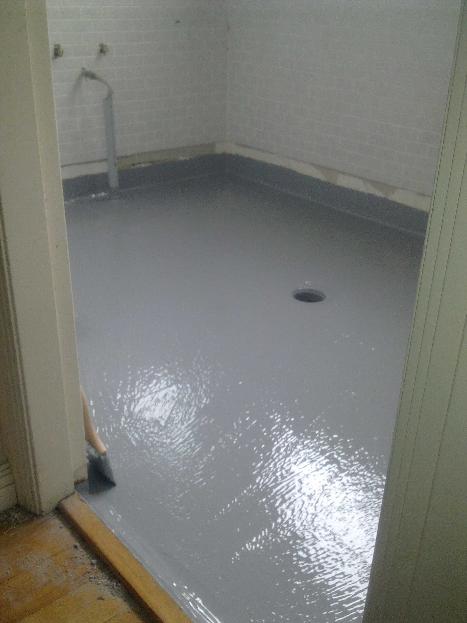 Дождитесь высыхания все элементов гидроизоляции и сделайте цементную стяжку поверх нее, после чего можно переходить к укладке плитки.