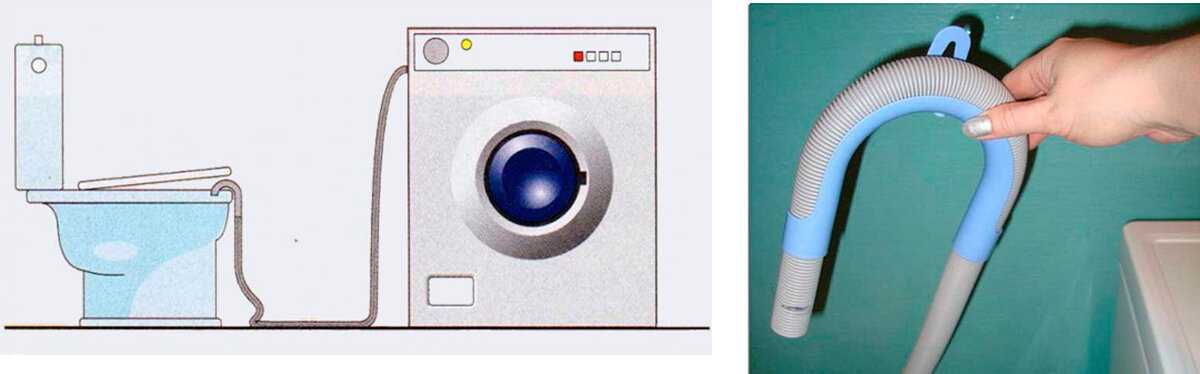 Еще один способ организовать слив со стиральной машины – это просто повесить шланг на бортик унитаза или ванны. В этом случае даже инструменты для монтажа не потребуются. Но правильным такой вариант назвать сложно. Плюс присматривать за подобным стоком воды придется более внимательно, чтобы наверняка избежать потопа в доме.