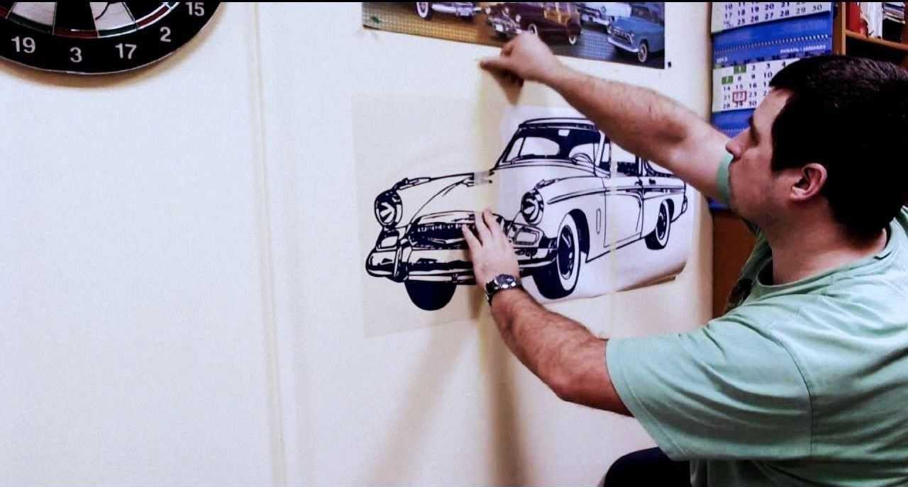 перенесите наклейку на монтажную пленку, уложив её на идеально ровную поверхность, например, стол. Клейкая сторона монтажной пленки должна прилегать к рисунку стикера; возьмите кусочек мягкой ткани и разгладьте все складки, имеющиеся на наклейке; когда все складки будут разглажены, аккуратно снимите с наклейки защитную бумагу, а прозрачная монтажная пленка при этом должна оставаться на лицевой стороне стикера; аккуратно прикладывайте изделие к разметке, тщательно разравнивая складки; прижмите тряпочкой или шпателем наклейку к поверхности, чтобы она пристала к ней как можно прочнее