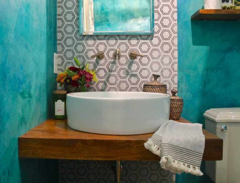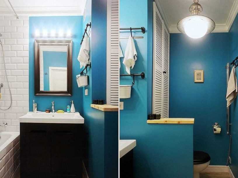 - Во-вторых, даже влагостойкую краску лучше не использовать непосредственно над источниками воды: около раковины или ванны. Чтобы ремонт был долговечным, а созданный интерьер продержался ни один год, лучше комбинировать отделку.