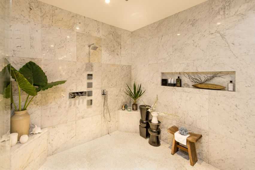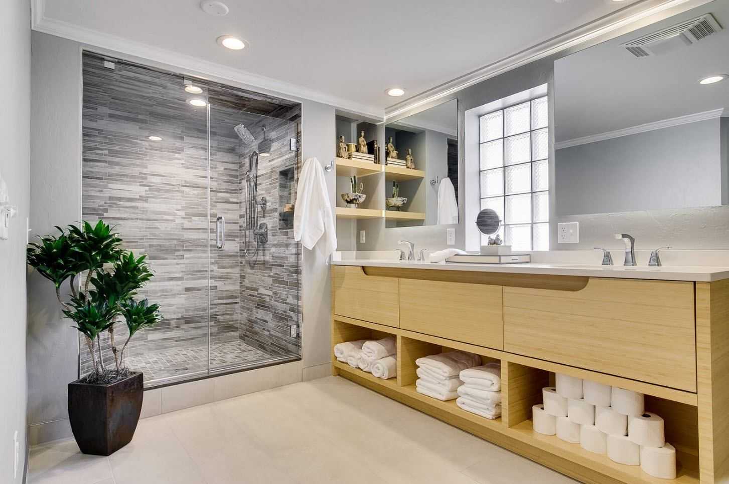 Ванная комната с полками: стиль и манера исполнения