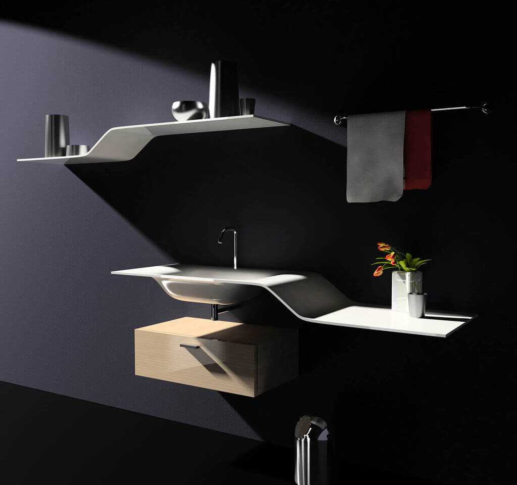 Полки — это обычные пластины, висящие прямо на стене. Они используются для хранения косметики, ароматов или различных украшений. Можно монтировать как прямые, так и угловые полки. Они отлично подходят для небольших ванных комнат, где каждый сантиметр стоит экономить.