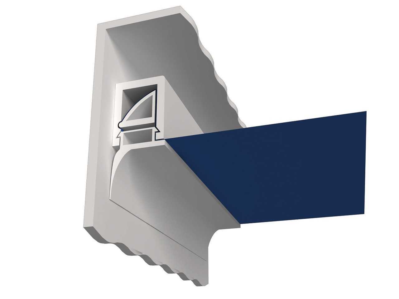 - При помощи данной окантовки полотно заправляется внутрь профиля.