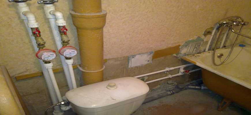 При разводке в раздельном санузле в стене прорезают отверстие, необходимое для подвода канализационного слива или водопровода к стояку.