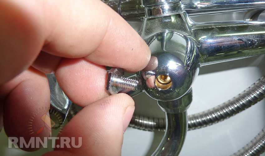 - откручивают винт, закрепляющий вентиль на смесителе;