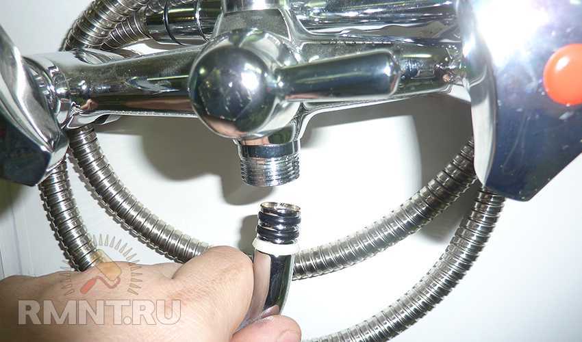 Для устранения этой неисправности в смесителе, который сломался, также необязательно применять инструменты. Нужно лишь открутить гайку, закрепляющую лейку на шланге, и заменить изоляционную прокладку.