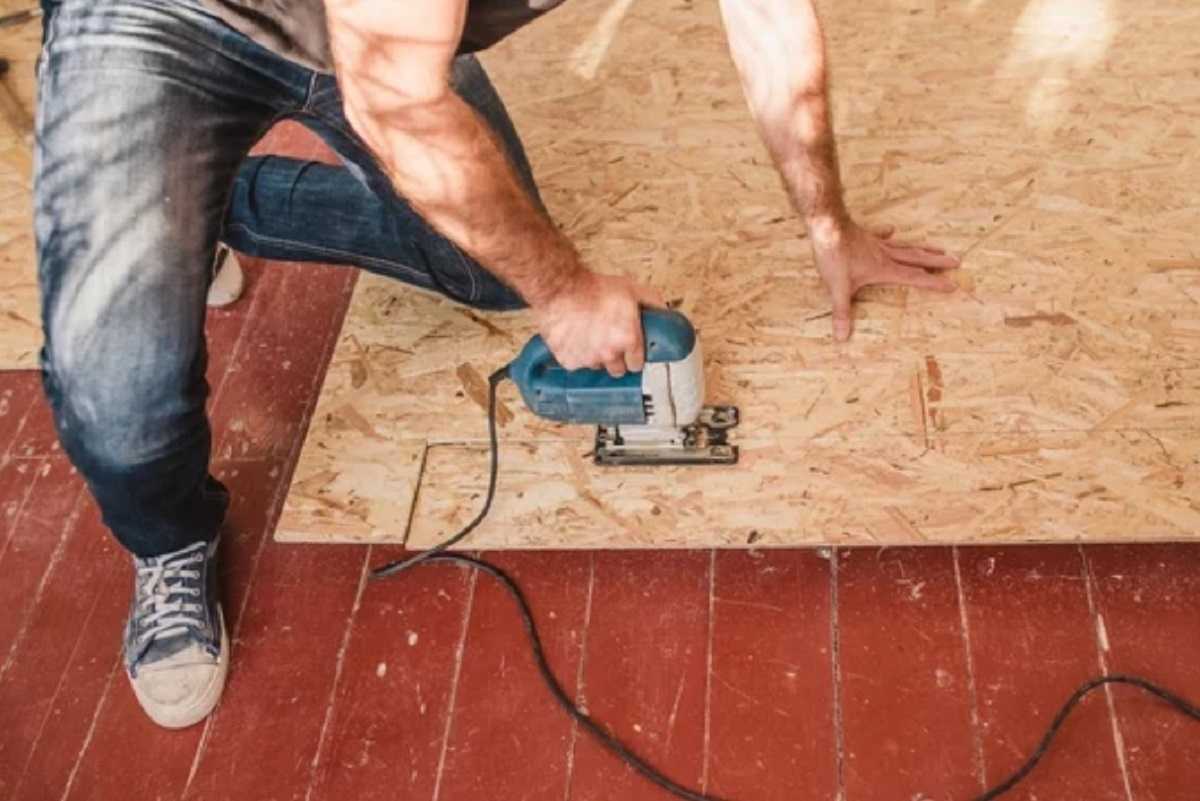 - Поверх них настилаются листы ОСП, фанеры или из гипсоволокна, между ними оставляют 5 мм швы для заполнения герметиком. Это сводит риск протечек к минимуму.