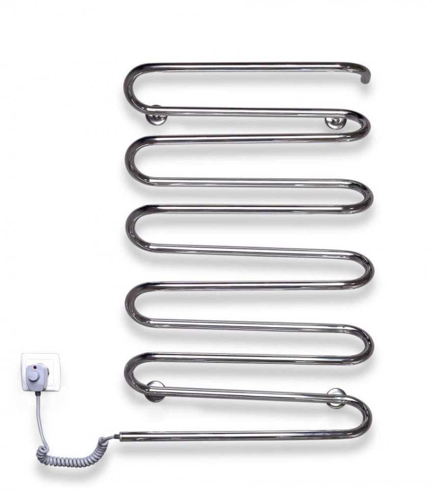 Электрический полотенцесушитель представляет собой несложную конструкцию из изогнутой трубы и ТЭНа, подключенного к источнику электропитания. Особенности подключения зависят от конструкции модели. Сам прибор крепят к стене или устанавливают на пол.