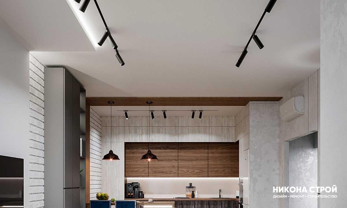 Подвесные светильники обеспечивают дополнительное освещение. Популярными являются поворотные прожекторы, так называемые трековые светильники с металлическими плафонами различных форм, которые фиксируются по периметру потолка на металлических трубах или деревянных балках. В одном помещении можно сочетать разные формы плафонов.