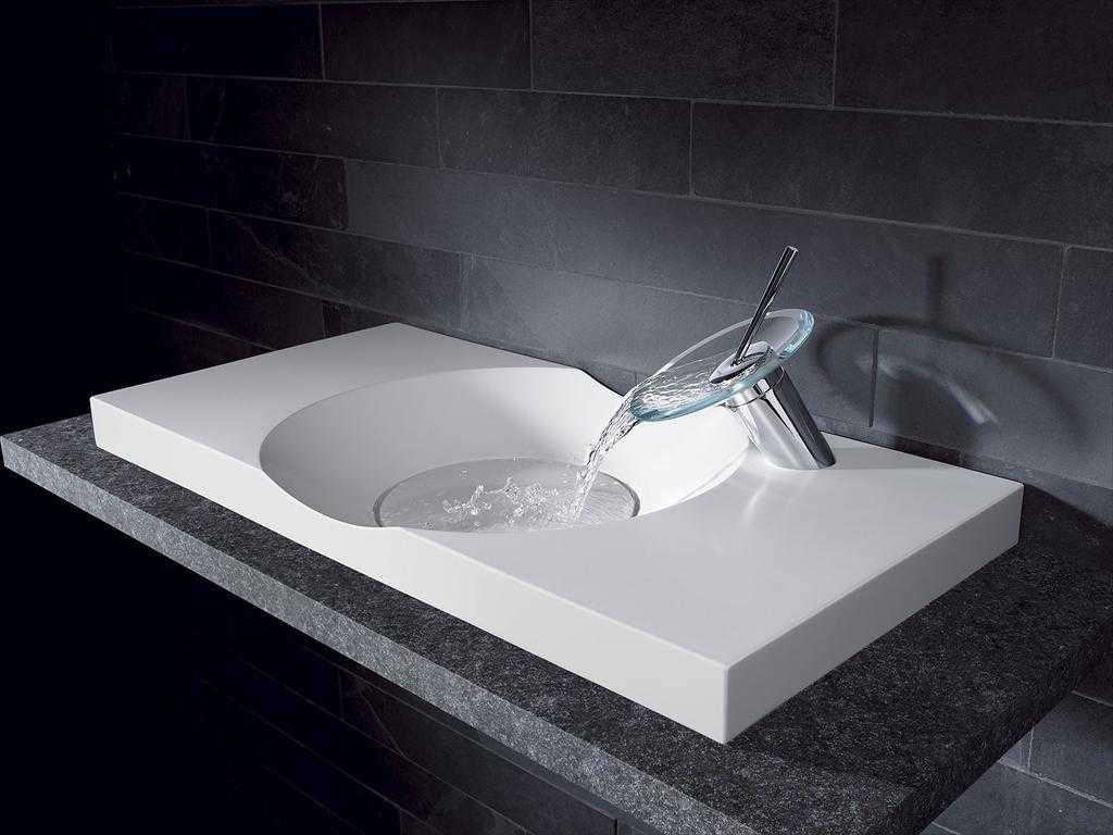 Смеситель над накладной раковиной можно вмонтировать в стену