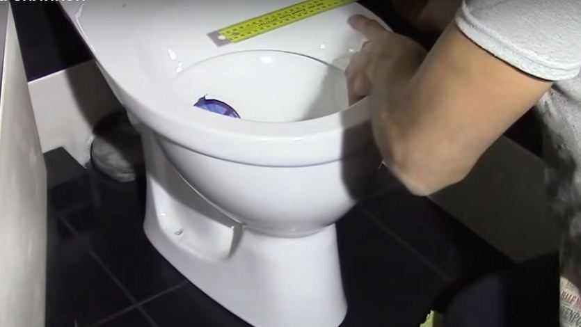 - Установите унитаз по метке на полу. Проверьте расстояние от стен рулеткой, при необходимости измените положение.