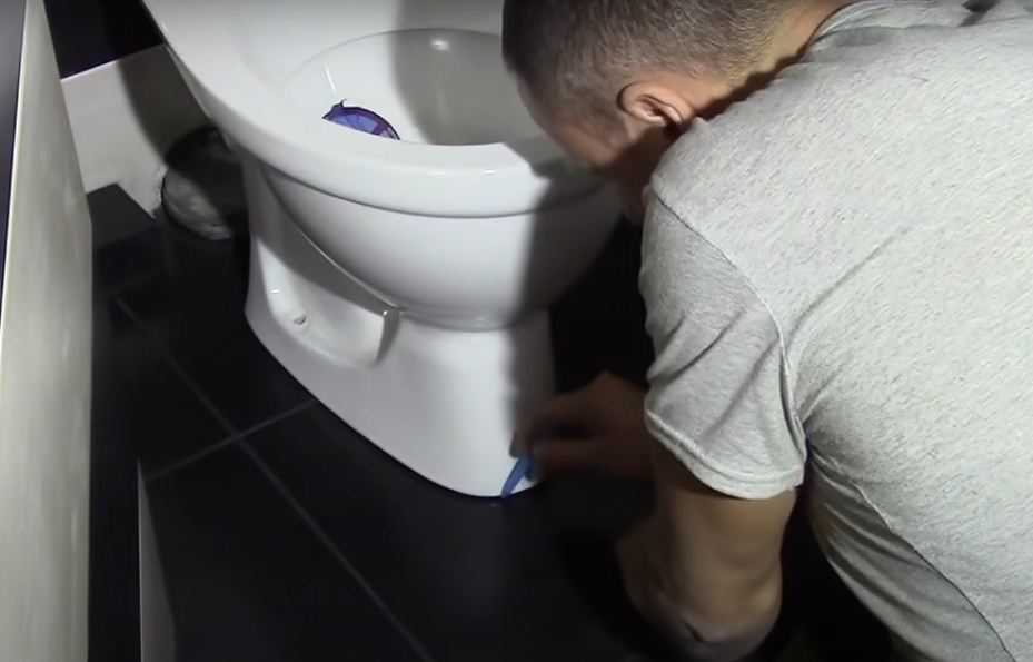Унитаз устанавливается на пол, обводится его контур и по нему наносится клеящая смесь (не слишком много, чтобы излишки не испачкали лицевую сторону прибора). Чаша ставится на запланированное место, а излишки клея сразу убираются тряпкой, после чего унитаз нельзя трогать в течение 10-12 часов.