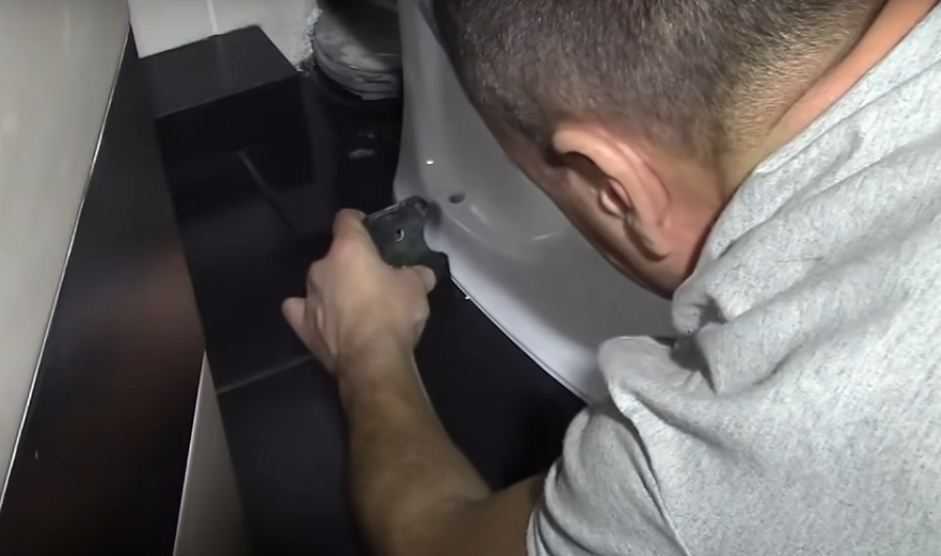 - Кроме того, стык обрабатывается герметиком и проверяется на надежность, залив в бак 8-10 литров воды. Если в будущем будет обнаружена утечка, она снова забьется.