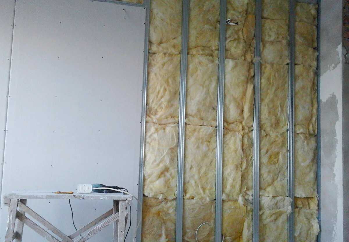 Гипсокартон крепится на саморезы к вертикальным стойкам и горизонтальным перемычкам. Головки метизов слегка утапливаются, позже замазываются стартовой шпатлевкой. На последнем этапе фальшпанели гидроизолируются обмазочным или окрасочным составом. Для крепления полок, гардин и навесной мебели в каркас закладываются дополнительные профили. Затем составляется схема расположения стоек и перемычек.