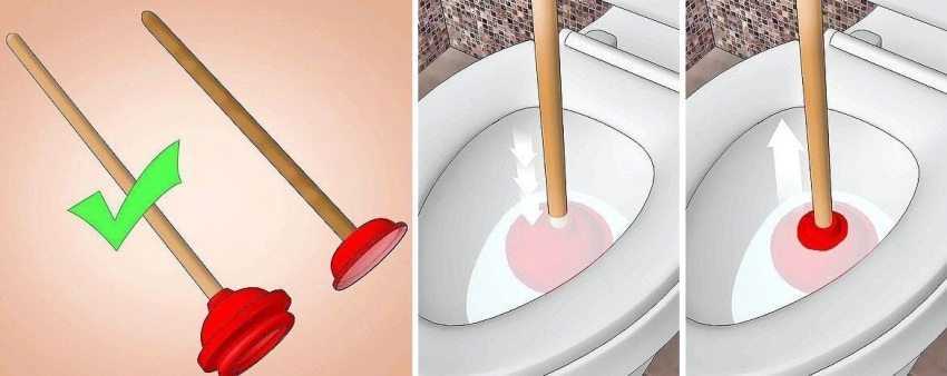 Для осуществления механической прочистки пригодится вантуз. Используется, если засор образовался где-то в лежаке, и вода стоит не только в унитазе, но и в других приборах.