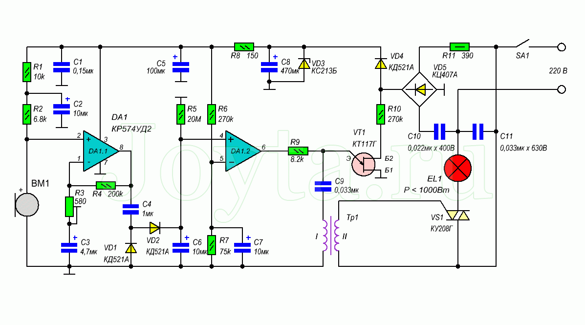 Схема простого акустического выключателя света своими руками