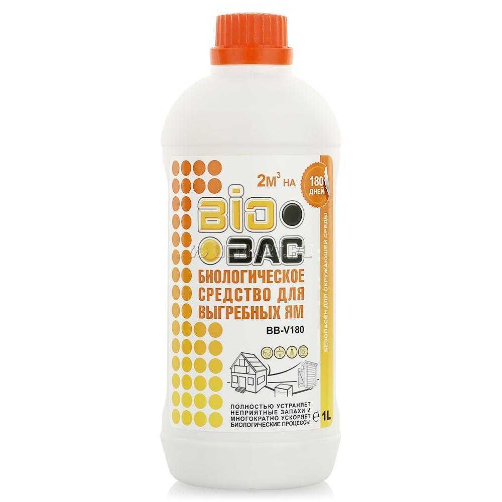 Средство для дачных туалетов и выгребных ям «BioBac BB-V 180» ориентировано на переработку 12м³ биологических отходов. Одной упаковки объемом 1 л хватает на 30-40 дней.