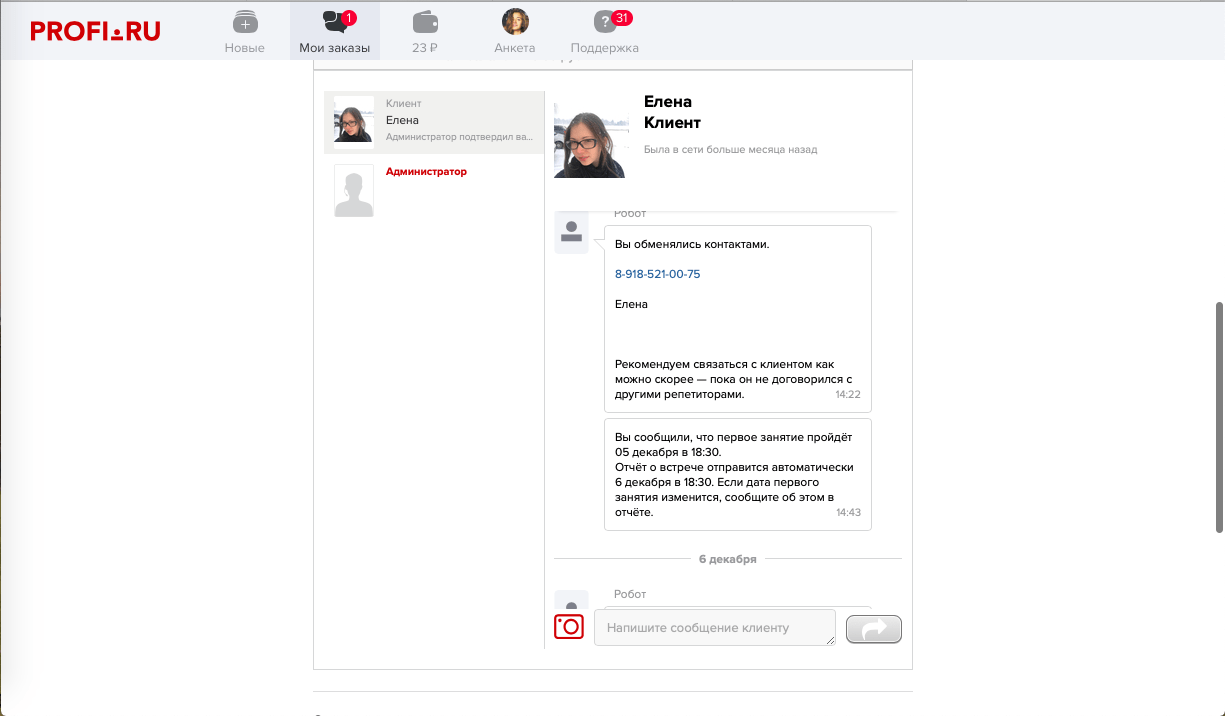 В рамках платформы вы должны обменяться контактами. Это будет значить, что клиент точно определился с выбором репетитора, и его объявление автоматически закрывается от других специалистов.