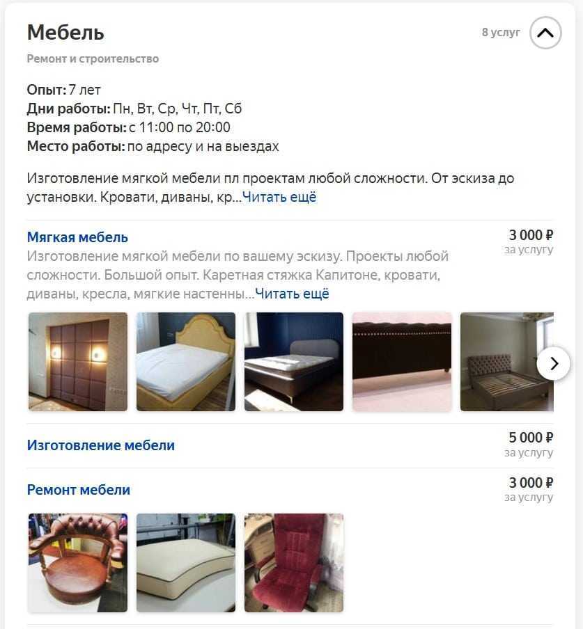 При желании исполнитель добавляет фото своих работ и указывает ориентировочные цены: