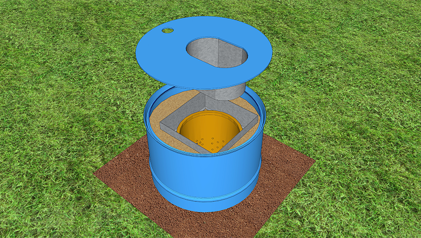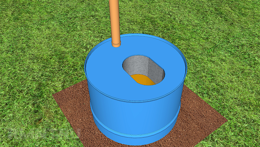 Для ямы прекрасно подойдёт труба ПВХ диаметром от 11 см, которую следует закрепить вертикально.